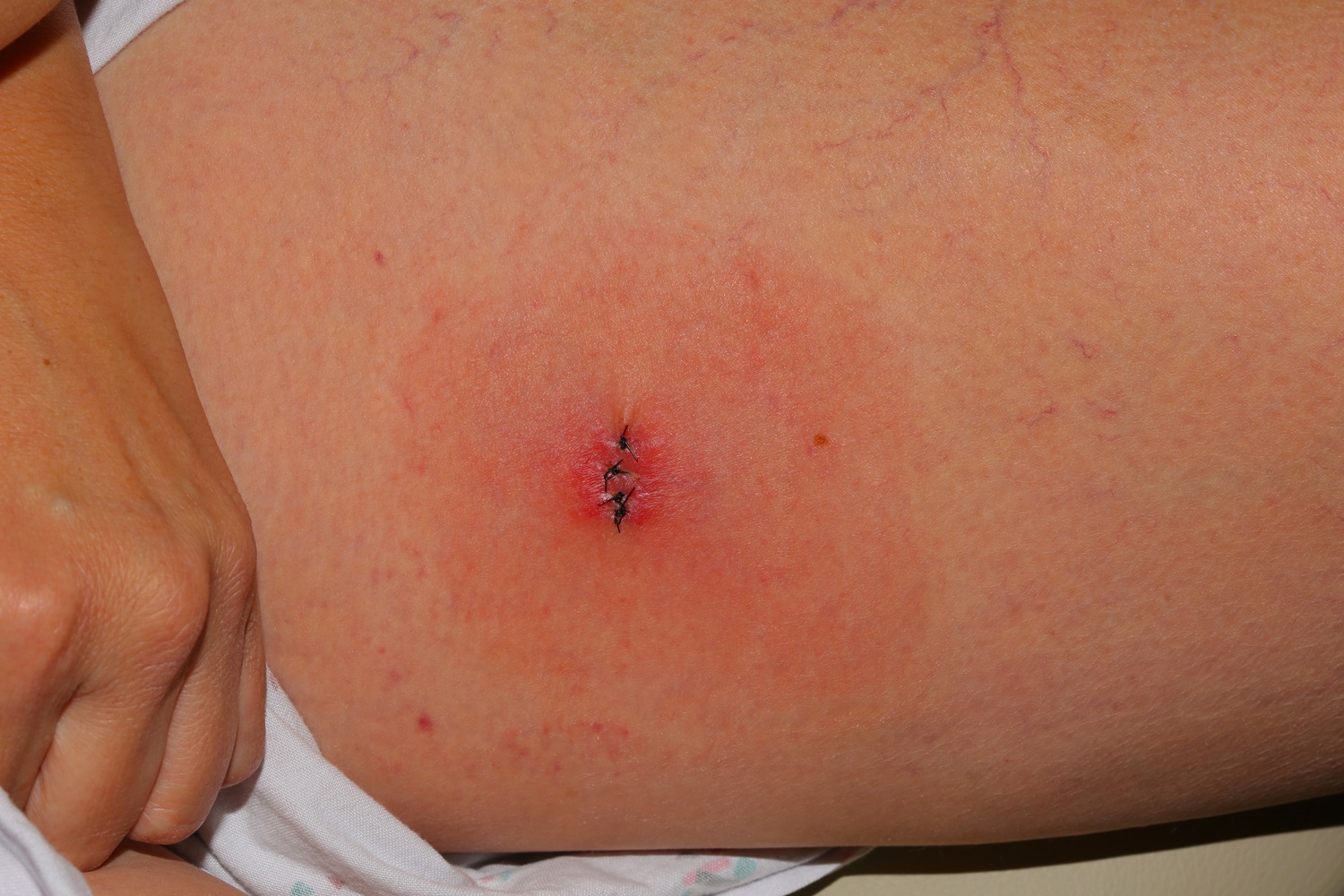 This patient called 4 days after minor surgery to say she thought her wound was infected. It was!